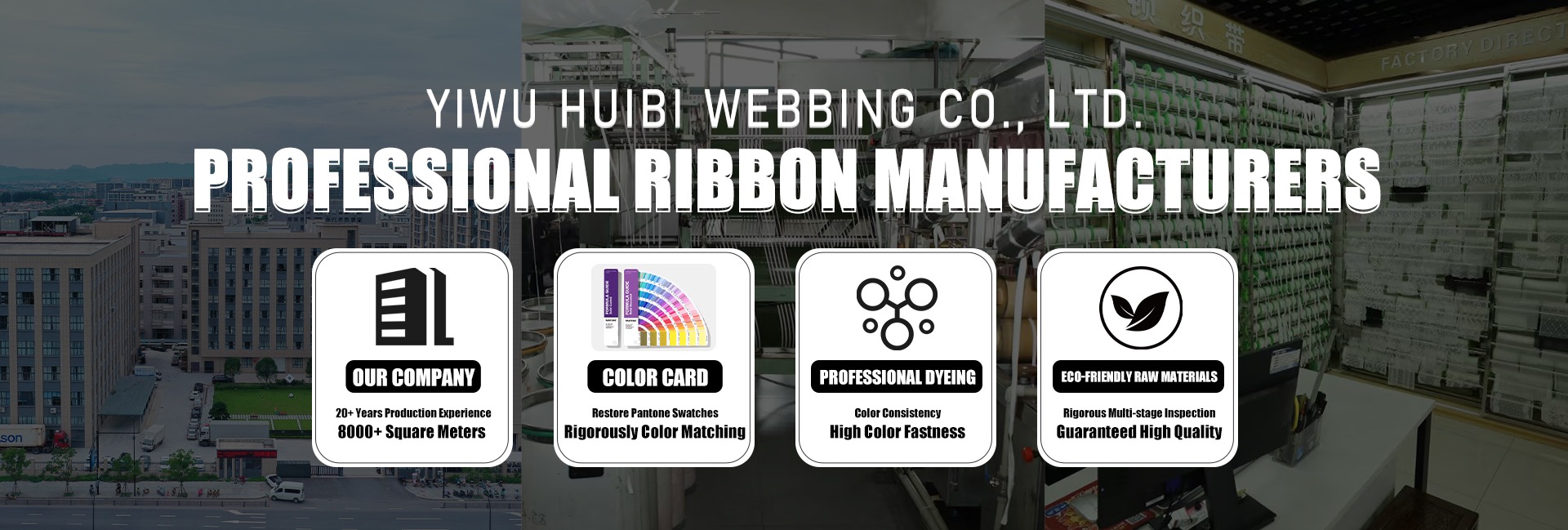 Yiwu Huibi Ribbon Co., Ltd. is a company specializing in the production of woven clothing accessories ribbon. The company has a modern standard factory building of 15,000 square meters, 200 Italian crocheting machines, and a daily output of 500,000 meters
